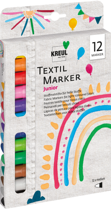 S popisovačmi na textil Kreul Junior nepozná detská kreativita hranice. Fixy na textil sú robustné a nekomplikované. Maľovanie s KREUL Textile Marker medium Junior je hračkou a začať môžete hneď. Tieto fixky totiž fungujú bez trasenia a pumpovania. V sade nájdete základné odtiene pripravených na vaše kreartívne návrhy.
